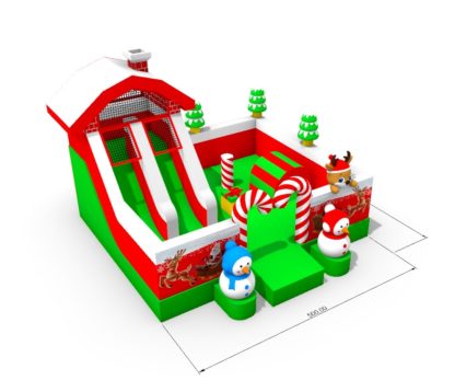 Apportez la magie des fêtes à vos événements avec notre incroyable structure gonflable de Noël ! Un décor féerique aux couleurs traditionnelles rouge, vert et blanc, décoré de bonhommes de neige, de cannes en sucre géantes, de sapins enneigés et d’un adorable renne de Noël.
